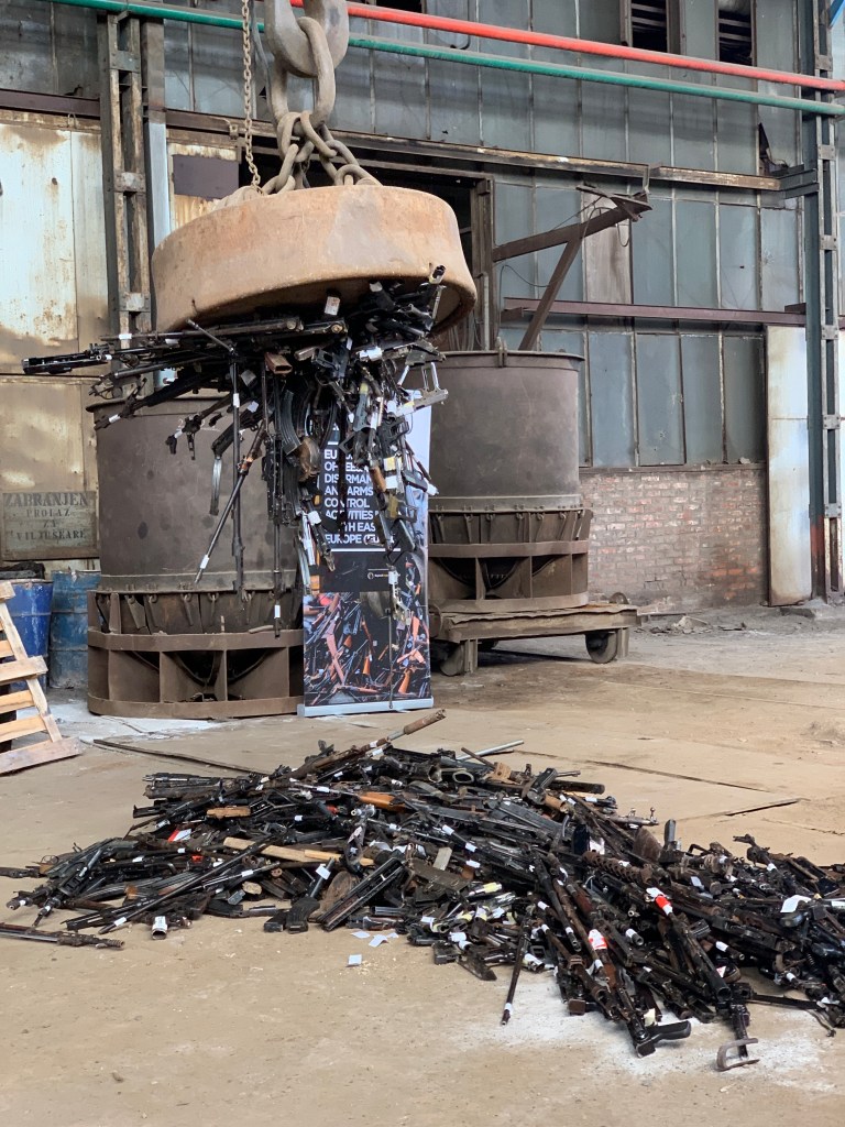 I especially like the final stretches of the reportage. After some good investigative work attempting to make connections between trafficking of weapons, ammunition and explosives through crime and organised criminal groups on the one side and some disturbing indications about some of these weapons and explosives ending up increasingly in the hands of right-wing extremists in Germany, the documentary ends with explaining the Roadmap which I referenced above. Bojana Balon, the Head of SEESAC, is being interviewed. And some impressive pictures deal with what we prefer to do with these weapons: Seizing them, and destroying them.