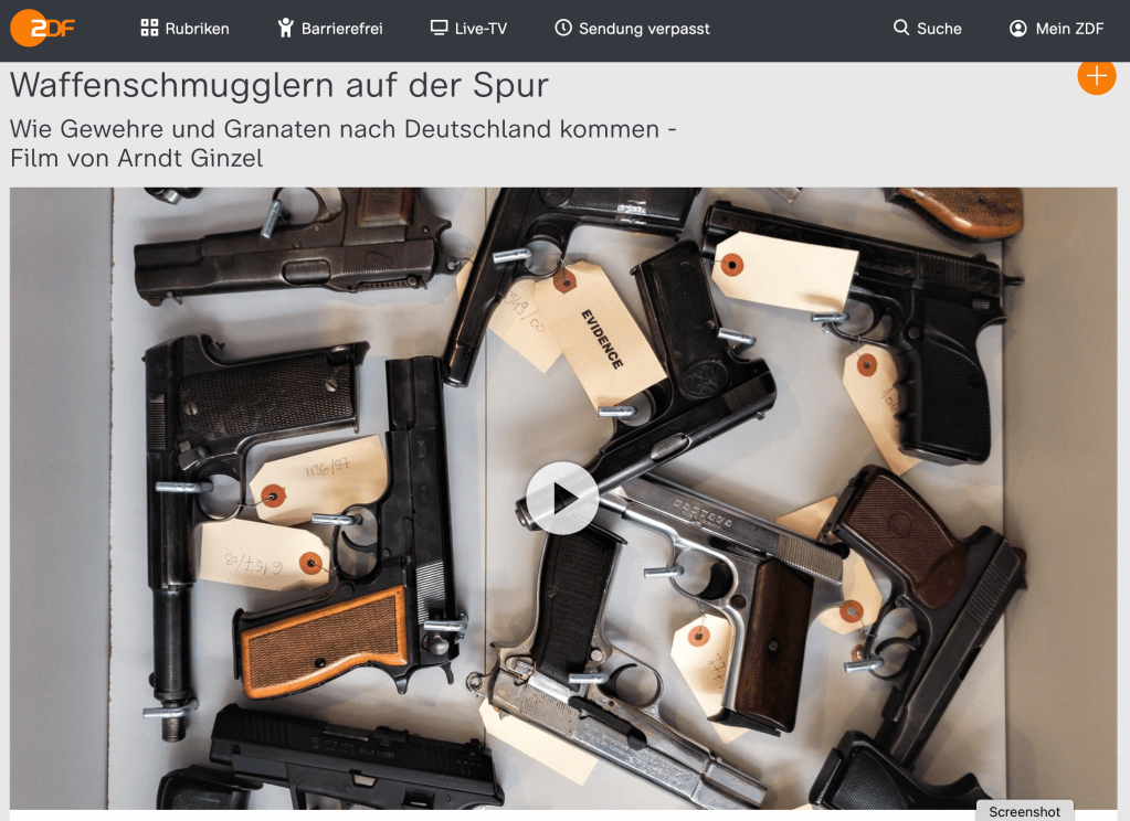 So, starting off a little bit on the funny side this morning, the screenshot below is about a piece of investigative journalism which was broadcasted by the German news channel “ZDF” March 24, 2021. Until March 24, 2023, you can watch this piece using the following link: https://www.zdf.de/dokumentation/zdfzoom/zdfzoom-waffenschmugglern-auf-der-spur-100.html